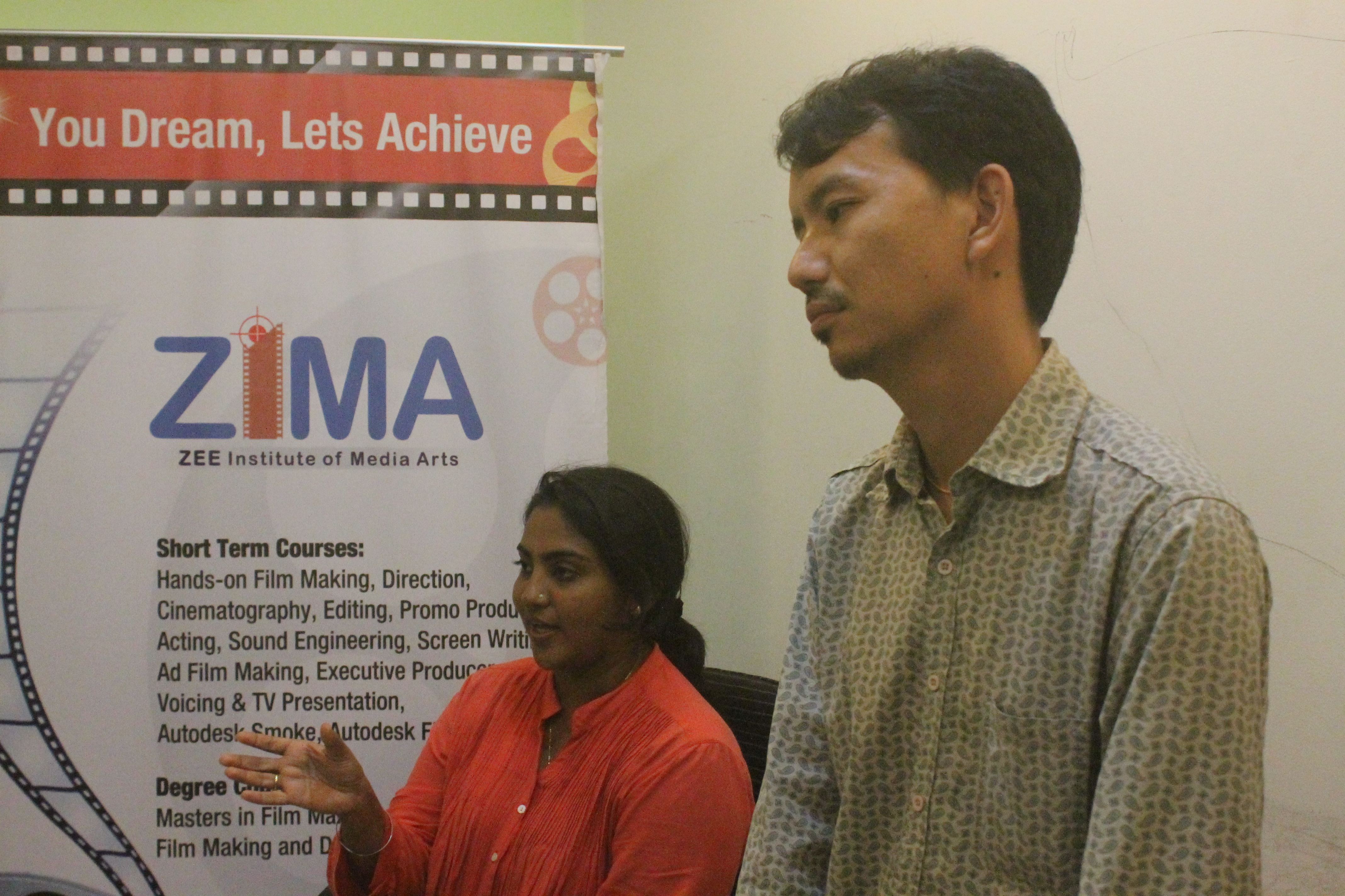 Director of National Award winning film "Crossing Bridges" from Arunachal Pradesh, Sange Dorjee had a lively interaction with ZIMA students when he came to introduce his film. He was accompanied by his Director of Photography, Pooja Gupte. It was an enlightening session as the students got an informed insight on the making and marketing of an indie film.