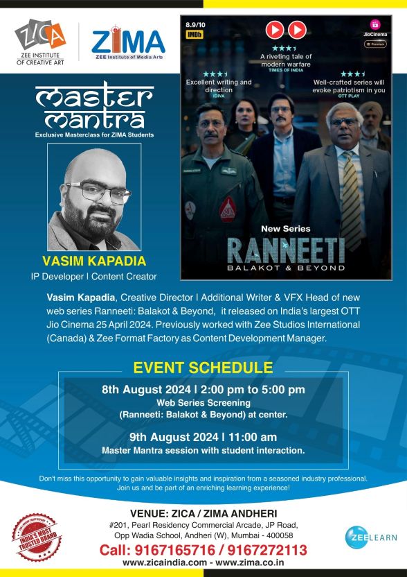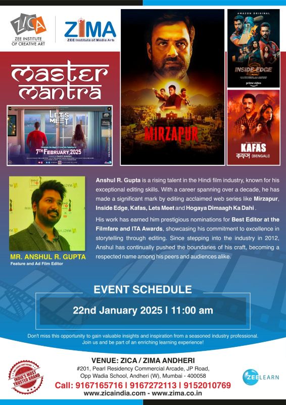 It is that day of the month where a Bollywood or Indian Film or TV industry stalwart is invited to ZIMA for an open forum with the students. The Guests share their technical knowledge sprinkled with their invaluable experiences of the industry gathered over the years.